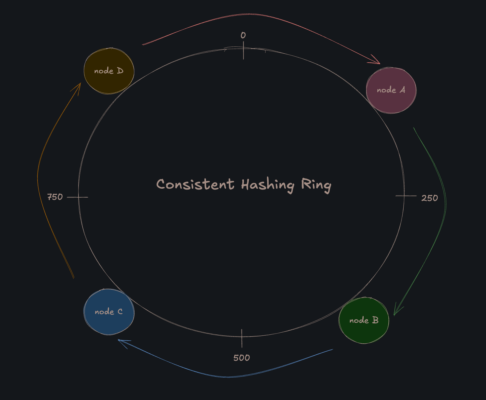 В консистентном хешировании диапазон возможных выходных значений хеш-функции рассматривается как фиксированное круговое пространство, называемое “хеш-кольцом”.
